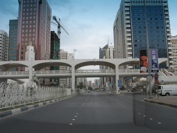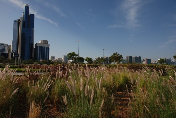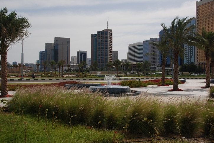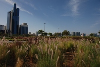 | Anfahrt auf Abu Dhabi | Abu Dhabi ist eine grüne Stadt | Im Hintergrund die Brücke zur Halbinsel | |