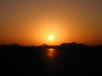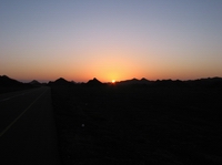 | Sonnenaufgang kurz vor Sinaw | Sonnenaufgang hinter Sinaw | Spiegelung im Asphalt | |