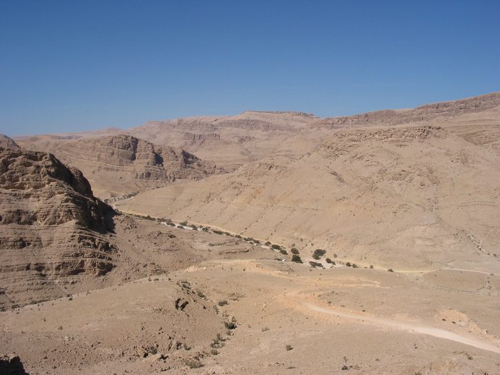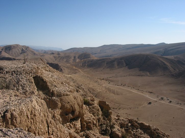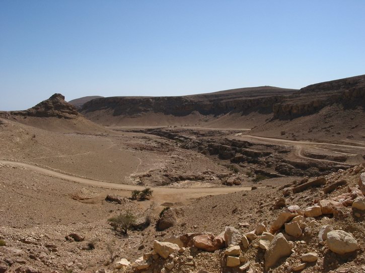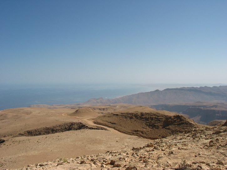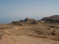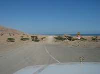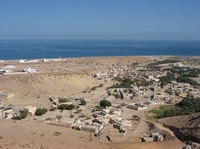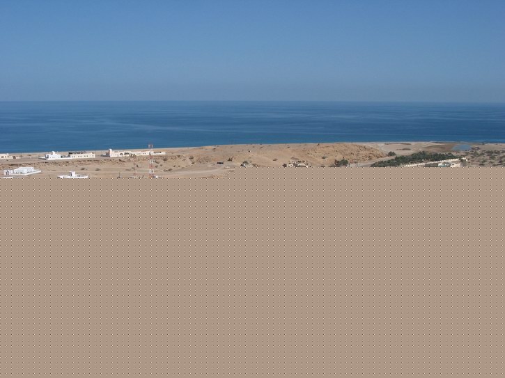 | Blick über Qalhat | Am Horizont das Meer | Am Horizont der Verlauf des Tracks | |