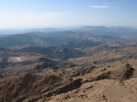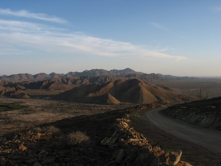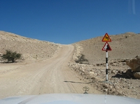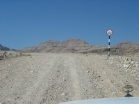 | Endlich wieder Asphalt und tolle Farben im Fels | Die Ausläufer des "Al Hajar Ash Sharqi" | Ausblick auf die Umgebung des "Al Hajar Ash Sharqi" | |
