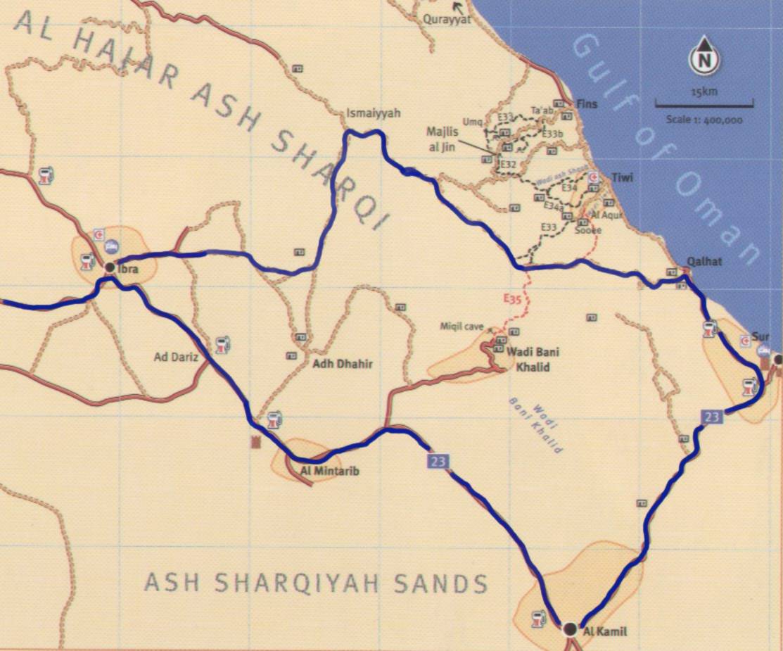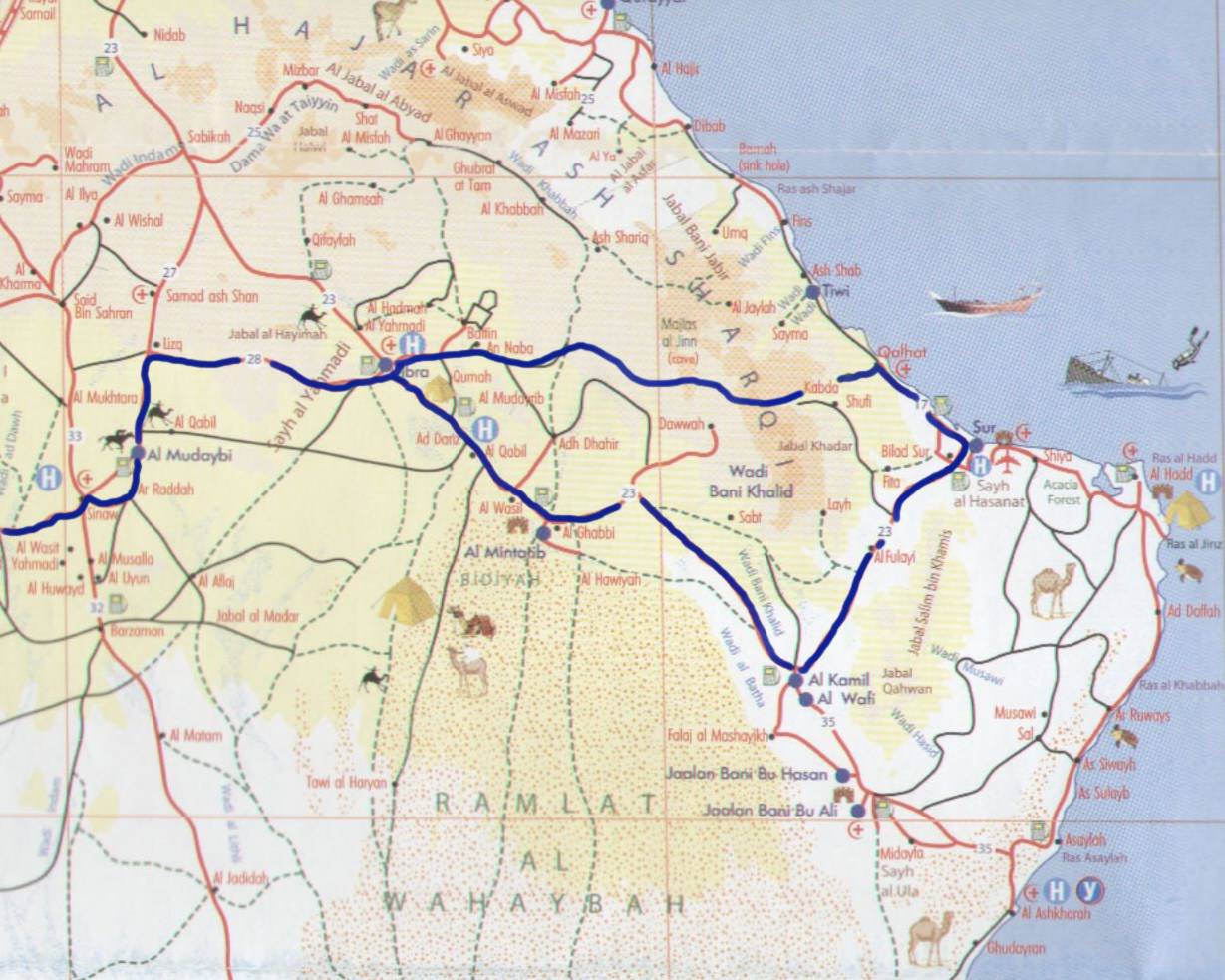 es zu erkunden gilt. Meine Wahl fiel auf das Gebirge "Al Hajar Ash Sharqi" nordwestlich von Sur. Es