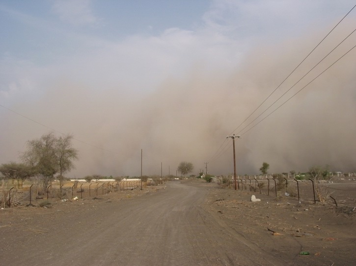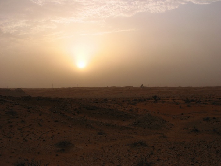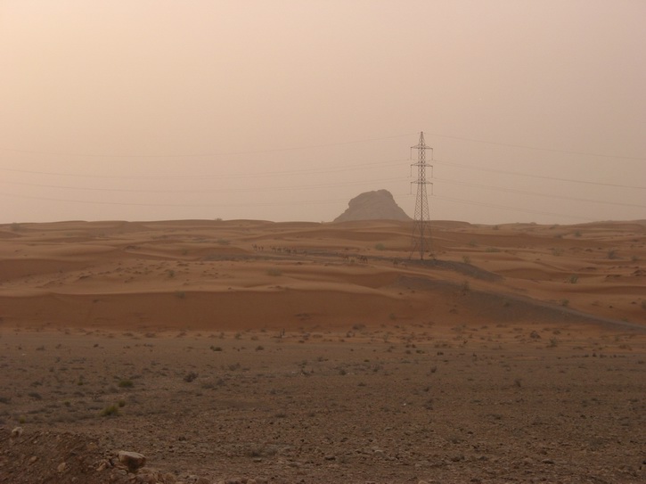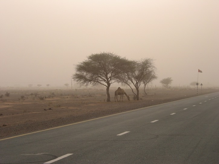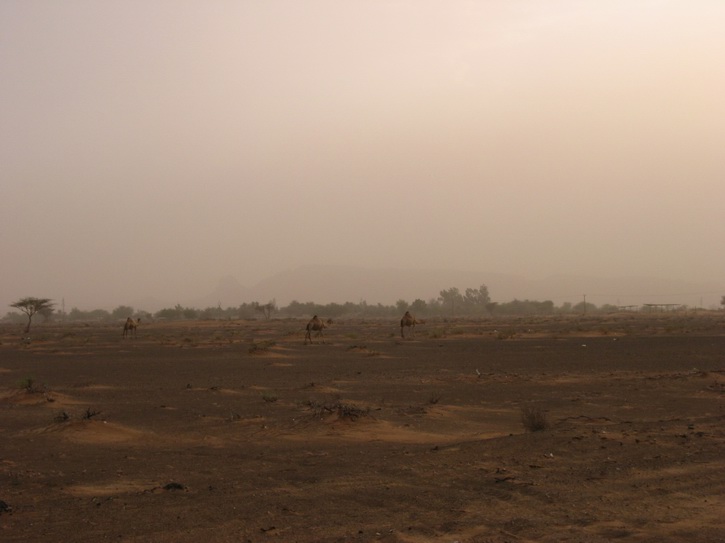 | Wie im Winter bei Nebel | Aber auch nach einem Sandsturm scheint wieder die Sonne | Ein einsames Dromedar | |