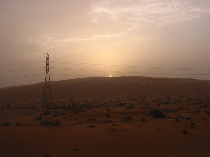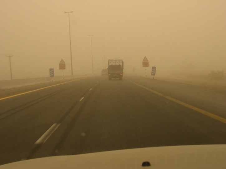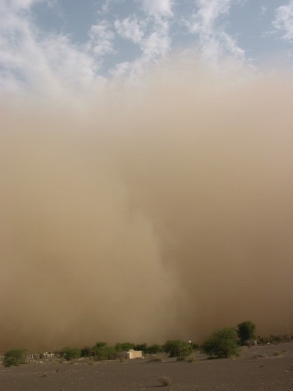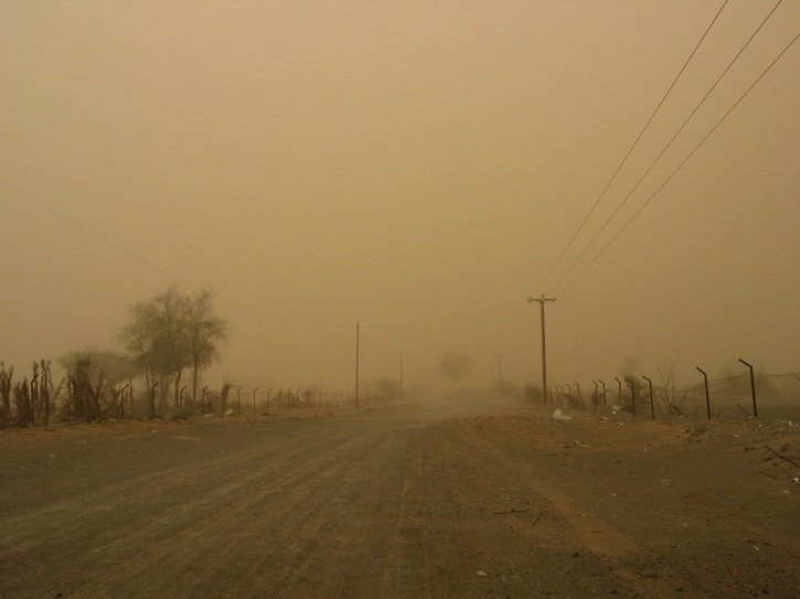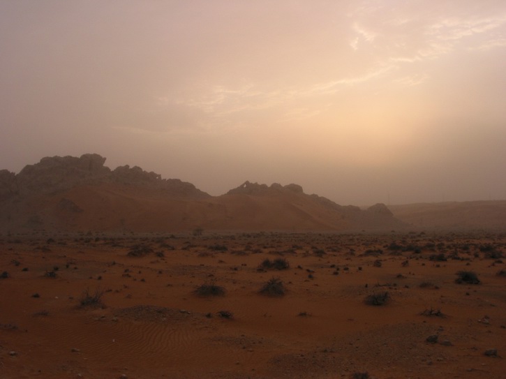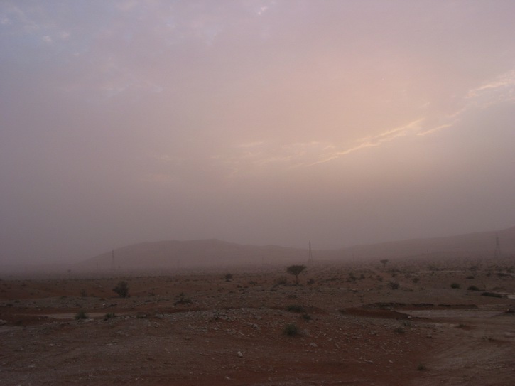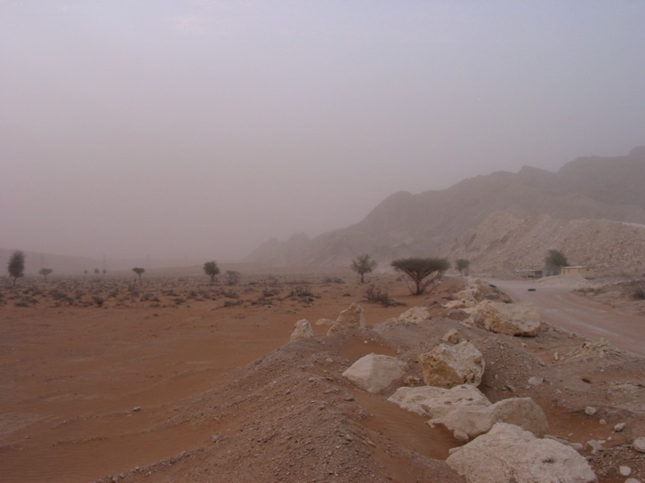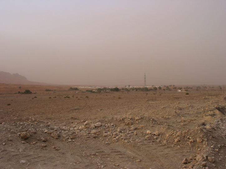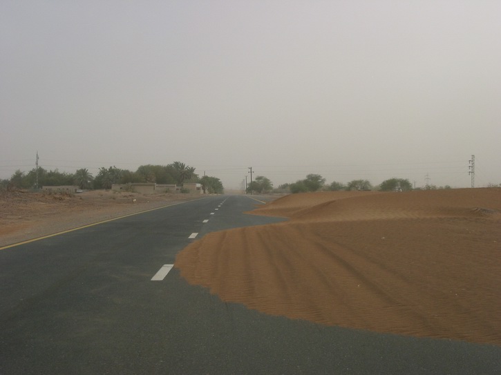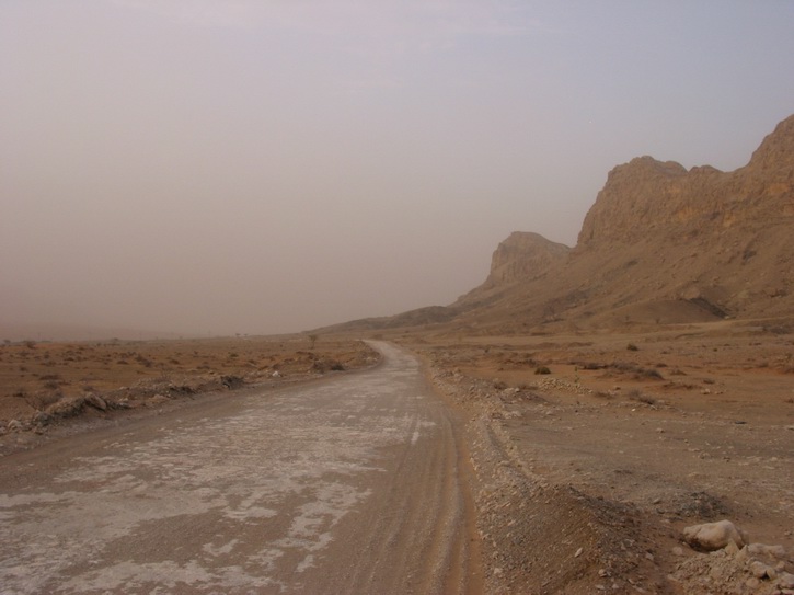 | Ein Dorf am Highway | Die Hauptstraße von Al Dhiad | Ein Sandsturm nähert sich | |