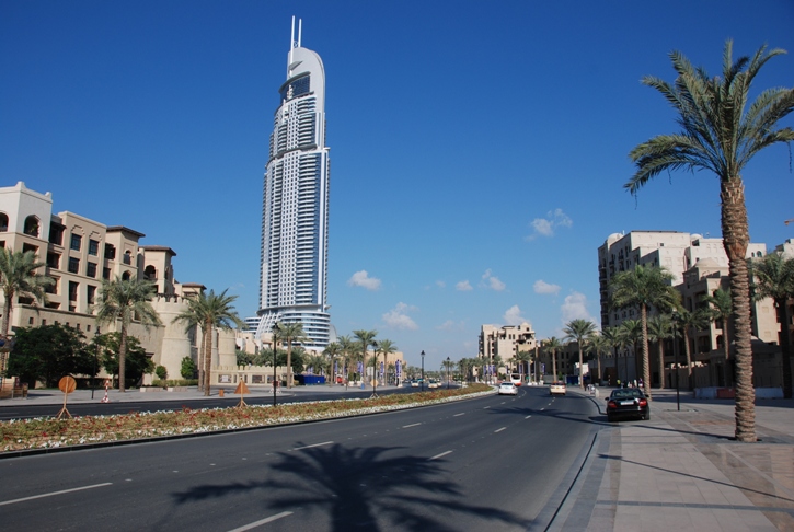 Im Hintergrund die Hochhäuser der Sheik Zayed Road |