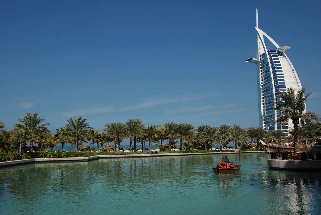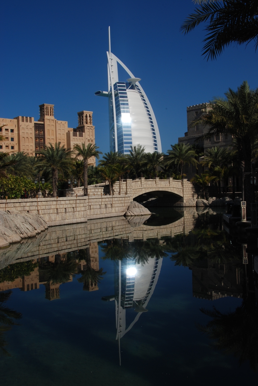 Wasserlandschaft und tolle Ausblicke auf das Burj Al Arab. (Zum Vergrößern bitte auf das Bild klicken). |